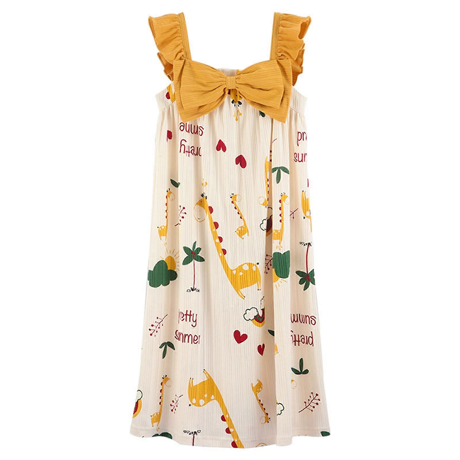 Women Summer Sleeveless Nightgown Cute Cartoon Giraffe Printed Sweet Bowknot Sleepshirts Ruffles Oversize Loose Long Nightdress Sleepwear XL