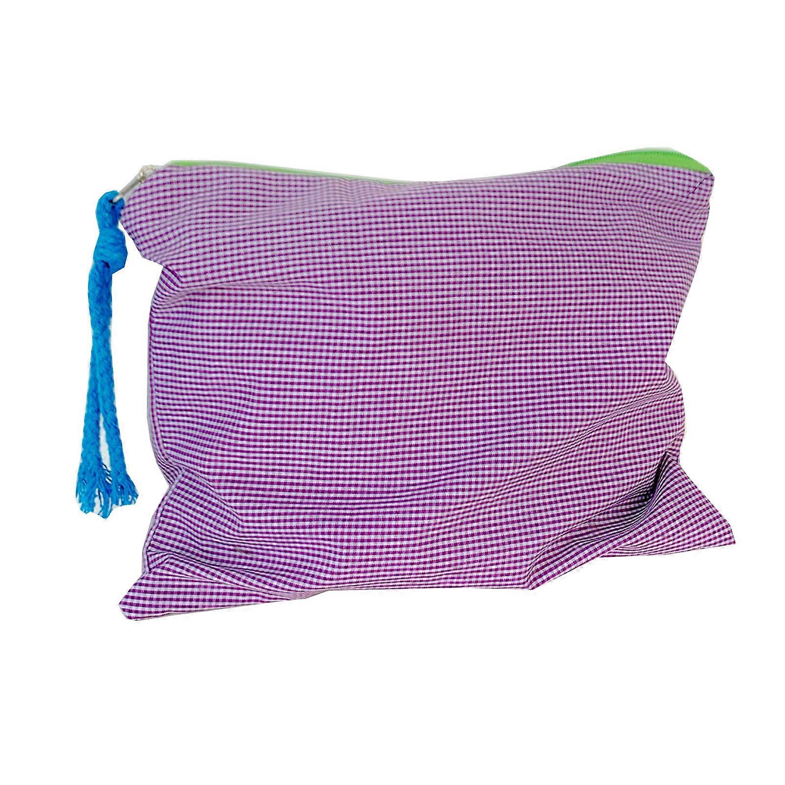 Women Plaid Makeup Bag Fashion Cotton Zipper Pouch Multipurpose for Girls Ladies Purple