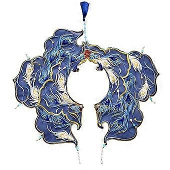 Women Girls Chinese Ancient Embroidered Feathered False Collar Beaded Tassels Yunjian Shawl Scarf Asymmetrical Capelet Blue