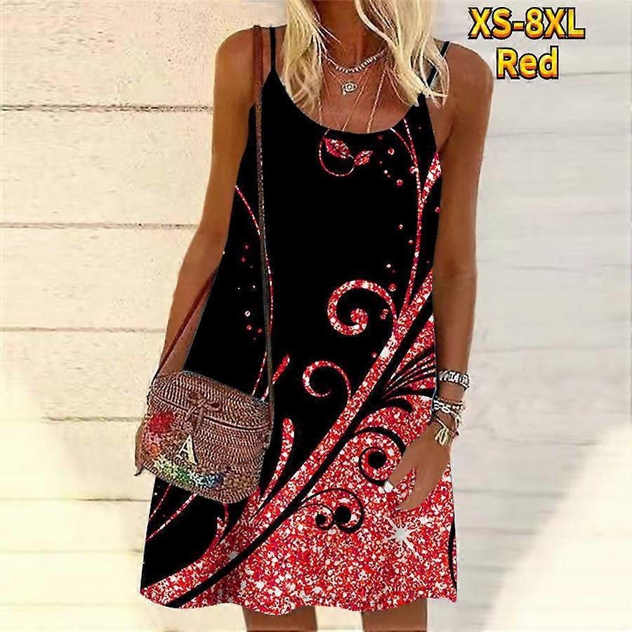 Women Flower Line Grass Printed Sequins Printed Mini Dress Sleeveless Party Dress Summer Beach Dress Sundress