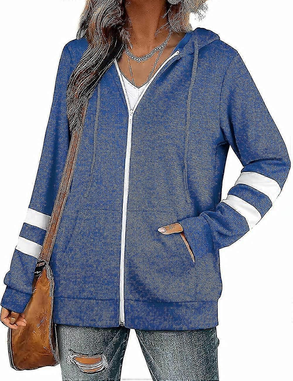 Womens Striped Long Sleeve Hooded Sweatshirts Jacket Cardigan With Pockets Superb