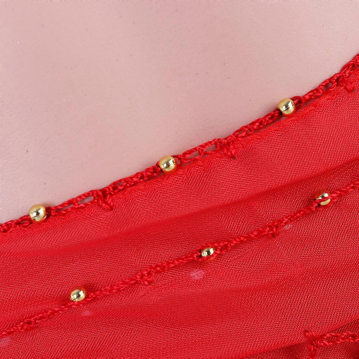 Women Chiffon Dangling Belly Dance Hip Scarf 3 Rows 128 Coins Wrap Belt for Belly Dancing Red