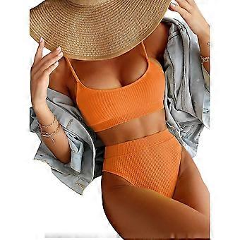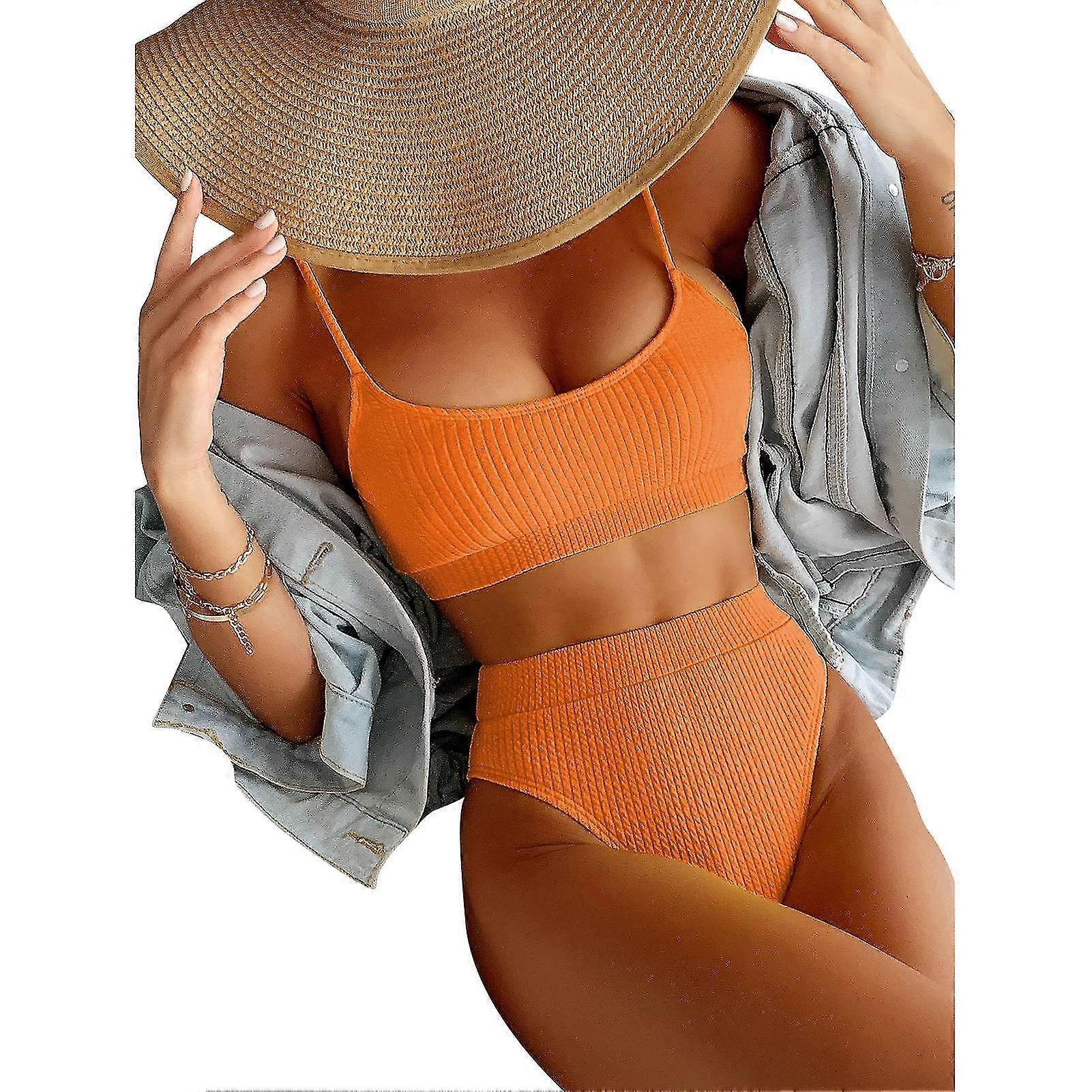 Women Spaghetti Strap Bikini Set Two Piece U Neck Ribbed High Cut Backless Bathing Suit