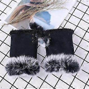 Women Winter Warmer Fingerless Half-Finger Gloves Faux Rabbit Fur Suede Wrist