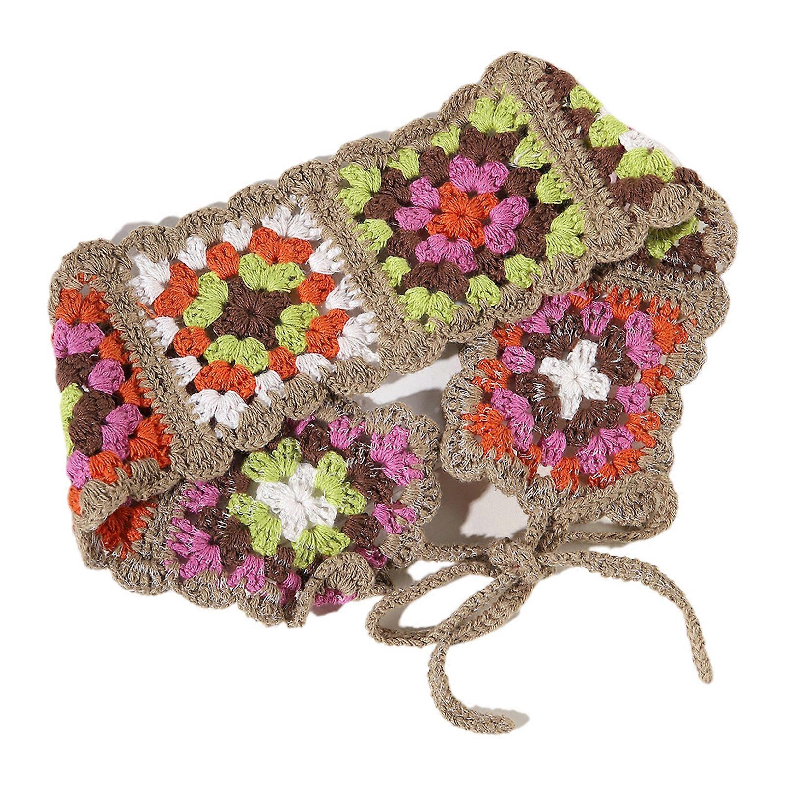 Women Color Matching Hairband Crochet Pastoral Bandanas Headband Elastic Hair Bands Turban Autumn Hair Accessories Coffee