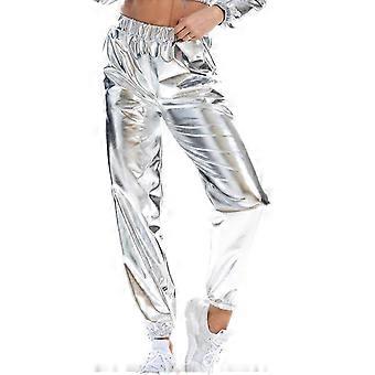 Γυναίκες ψηλόμεσο παντελόνι casual καλοκαίρι loungewear μεταλλικά παντελόνια