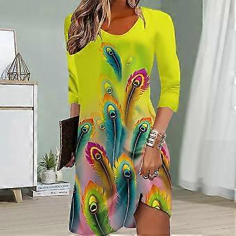Women Casual Dress Autumn Peacock Feathers Print Dresses For Women O-neck Short Sleeve Dress Plus Size