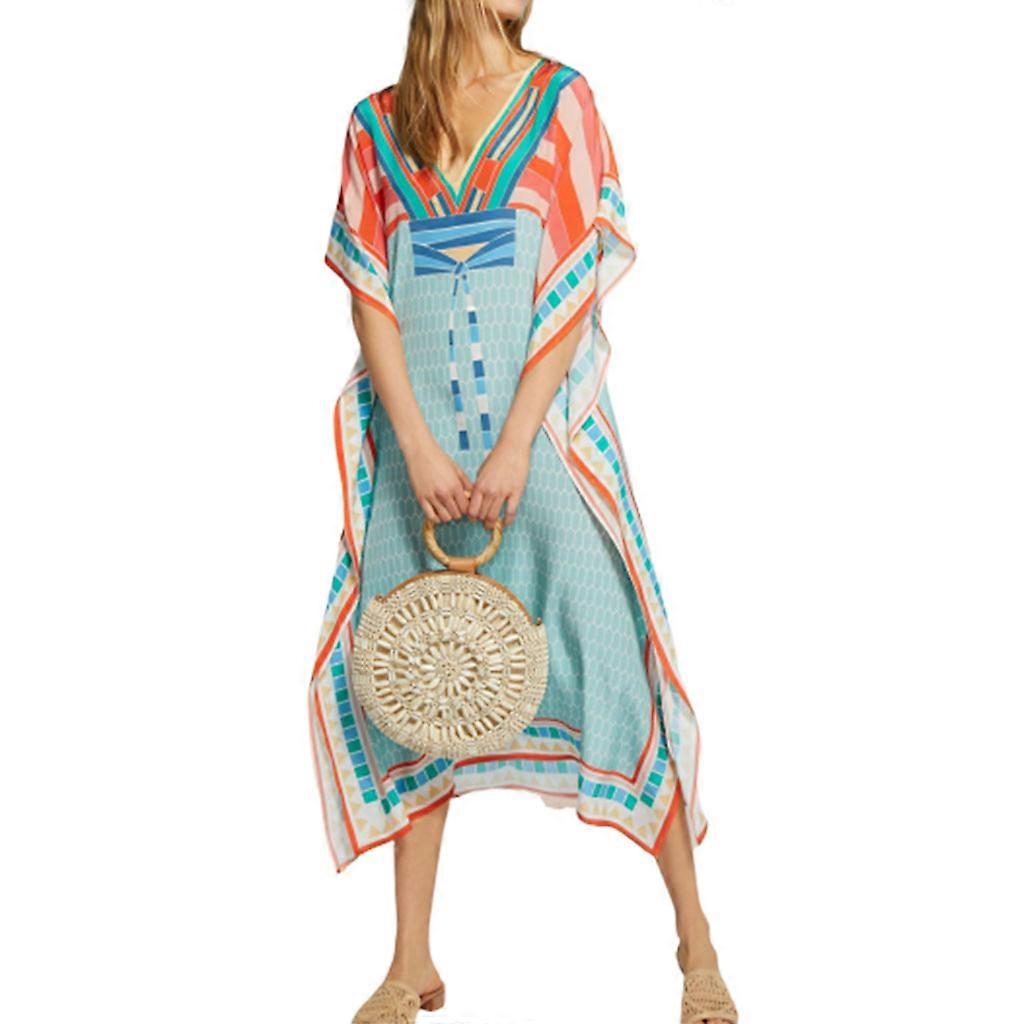 Women Sexy V-Neck Backless Kaftans Swimsuit Cover Up Colored Honeycomb Geometric