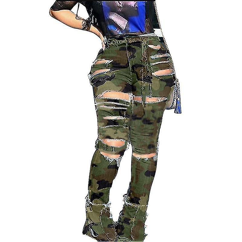 Women Streetwear High Waist Ripped Flare Bell-bottoms Jeans