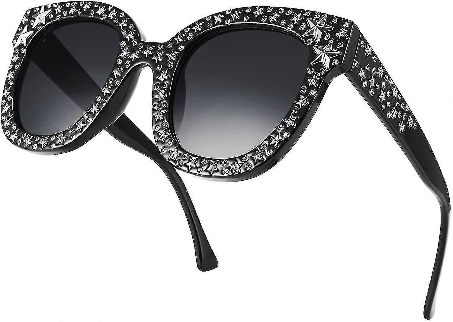 Women Vintage Sparkling Crystal Star Rhinestone Cateye Sunglasses Novelty Glitter Shades