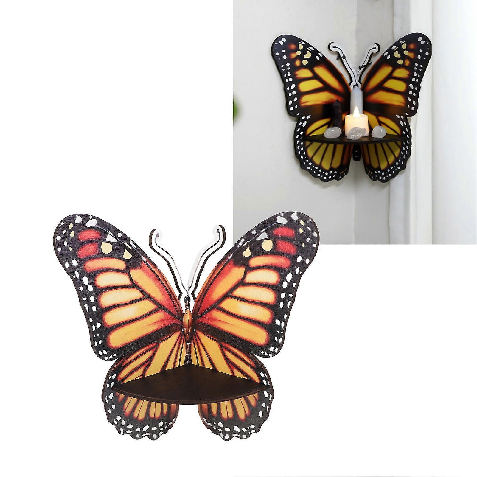 Butterfly Corner Shelf Aesthetic Display Multifunctional Wooden Butterfly Storage Mounted Shelf for Living Room Bedroom Yellow Black