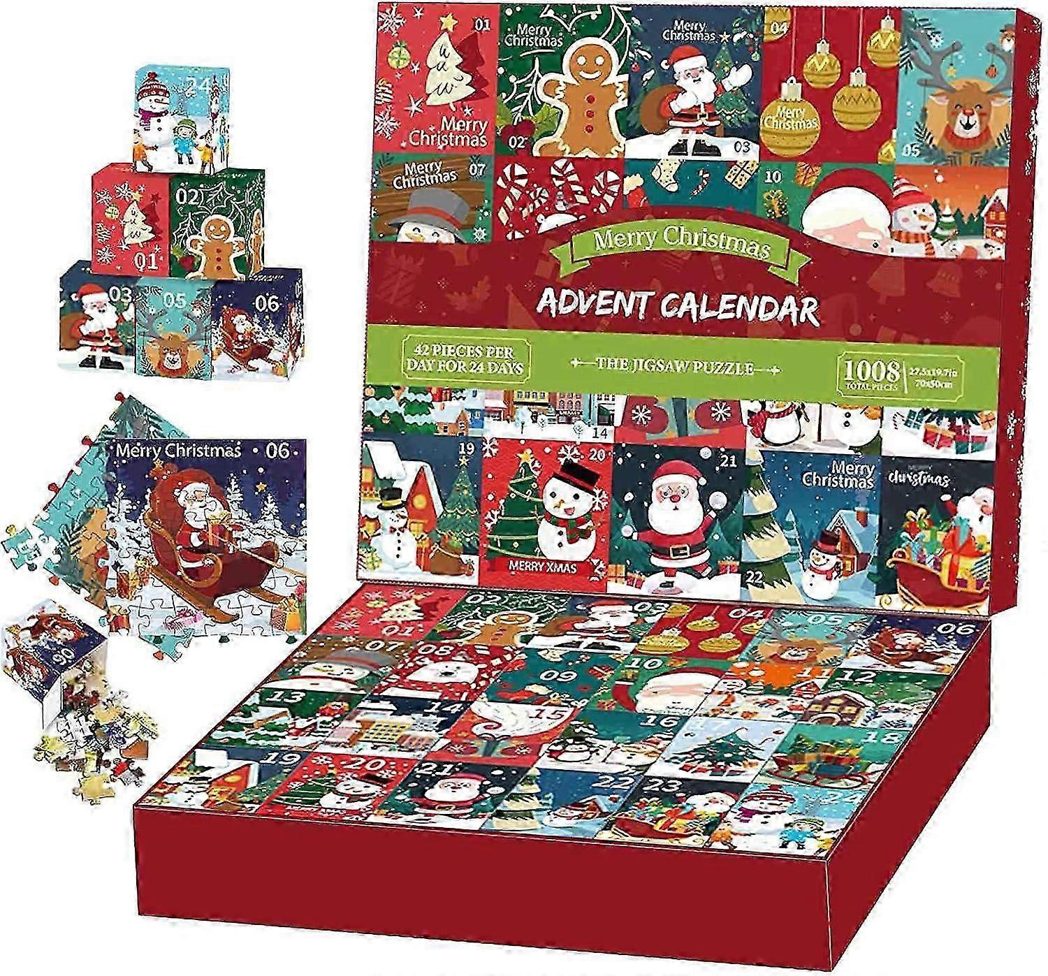 Unique Advent Calendar Jigsaw Puzzle: This delightful advent calendar features 24 numbered boxes that correspond to each day of December. Inside each box, you'll find 42 pieces of a 1008-piece jigsaw puzzle. Your goal is to complete one section of the puzzle every day from December 1 to December 24, watching your puzzle grow as you progress. HIGH-QUALITY MATERIALS: Includes a large size 70*50cm Christmas puzzle, a portable puzzle card, the puzzle is made of recyclable cardboard, high quality matte and safe and non-toxic, non-toxic ink treatment. reflective, not easy to fade, has a luxury feeling. Each piece is precisely cut for a perfect fit, allowing you to assemble the puzzle effortlessly. FAMILY FRIENDY AND CHALLENGING: This puzzle is the perfect way to bond with your family this Christmas. By completing each part of the puzzle together, you can strengthen bonds between family members, develop a sense of unity and joy, and take pride in completing a perfect Christmas piece with your family, making it the perfect activity for the whole family this holiday season. REUSABLE DESIGN: Unlike traditional puzzles which require gluing and framing, this puzzle is reusable. Thanks to the grid structure and the numbers printed on the back of each piece, you can easily disassemble the puzzle and put the pieces back in their respective boxes. This means you can enjoy this puzzle year after year and even give it to someone else to have fun putting it together. Funny Christmas Gift: 1008 PIECE CHRISTMAS JUGGLE is a timeless puzzle and entertaining game. Beautifully packaged for Christmas, it is a perfect Christmas gift for adults, teenagers, lovers and parents. Let Santa Puzzle bring warmth and blessings to your Christmas celebration. Countdown to Christmas 2023 together!