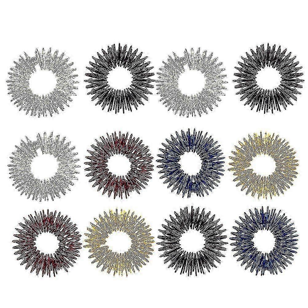 12-Pack Stainless Steel Acupressure Rings for Joint Pain Relief & Relaxation (Silver, Gold, Black, Blue, Red)