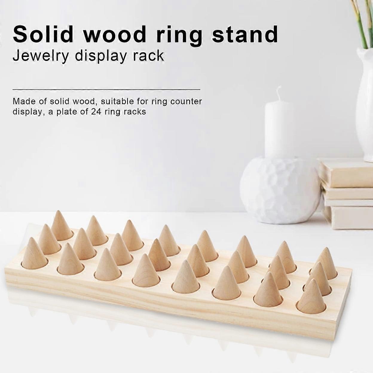Rings Display Stand 24-Bit Cone Rack Wood Eco-friendly Thick Tray Rings Storage Rack Holder Organizer for Shop Retail