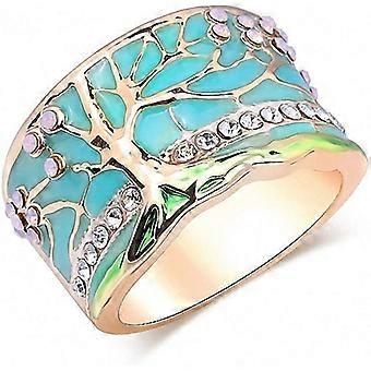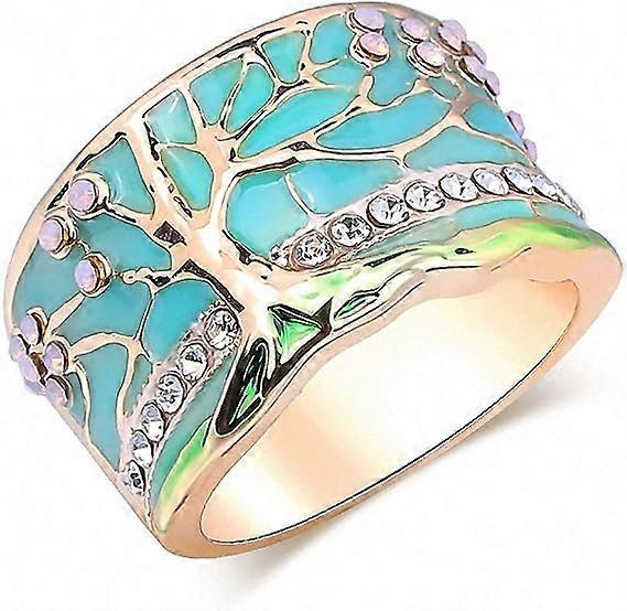 Flower Tree Rings Gold Pink Opal Green Enamel Wide Ring for Woman Party Crystal Vintage Jewelry