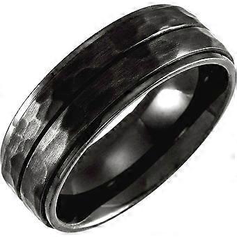 Titanium 8mm Polished Grooved Band With Hammered Finish Ring for Women and Men - Ring Size: 7 to 13.5