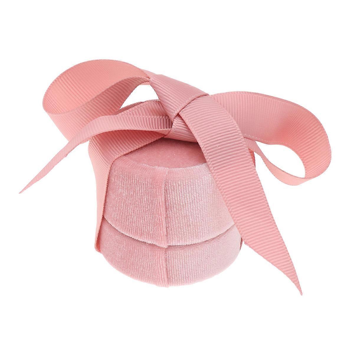 Ring Storage Box Round Storage Case Ring Storage Organizer with Ribbon Pretty Jewelry Packaging Box (Pink Small Size)