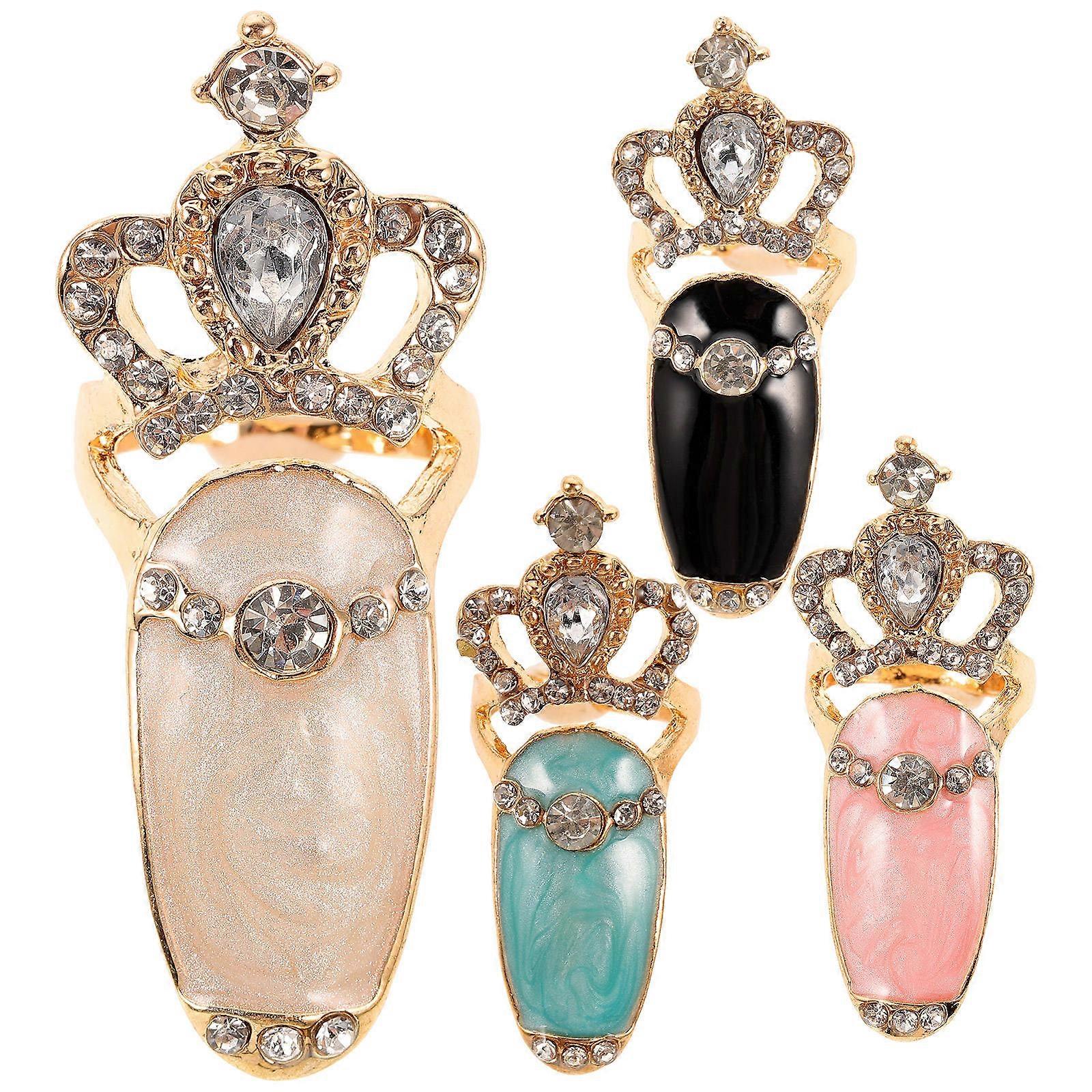 Fingernails Ring Crown Nail Ring for Nail Art Decoration 8Pcs Assorted Color