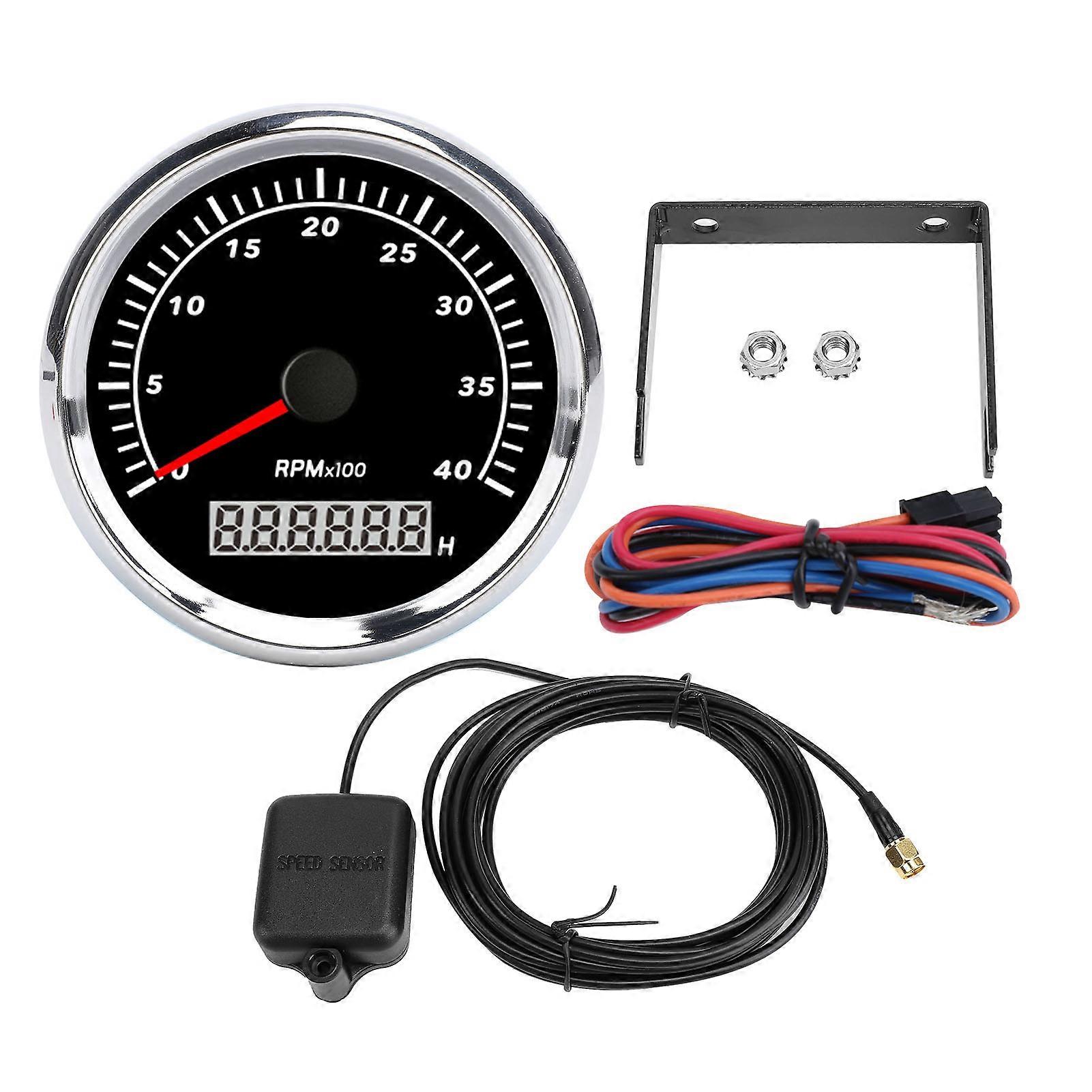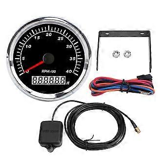 Tachometer Gauge Pointer and LCD Digital Display 85mm Step Motor RPM Meter with Backlit Black Dial Silver Bezel for Car Truck RV Boat
