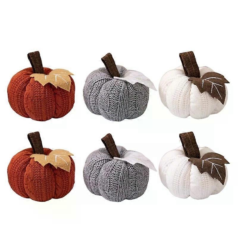 Knit Pumpkin Ornaments, 6PCS Soft Durable Seasonal Fall Thanksgiving Home Office Decor