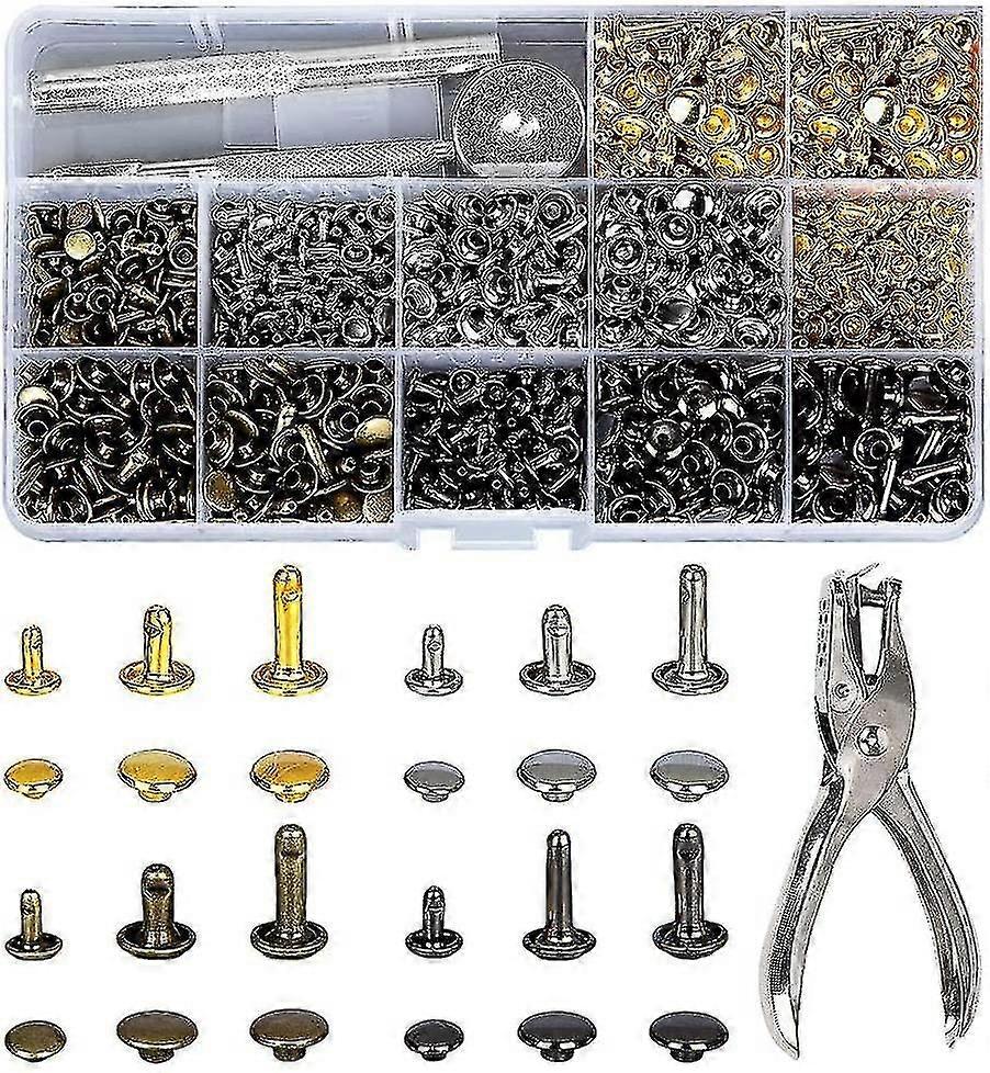 Leather Rivets 480 Set 3 Sizes Double Rivet Tubular Metal Studs With 4 Pieces Fixing Tool And Punch Plier For Leather Craft Diy Rivets For Leather 4 C