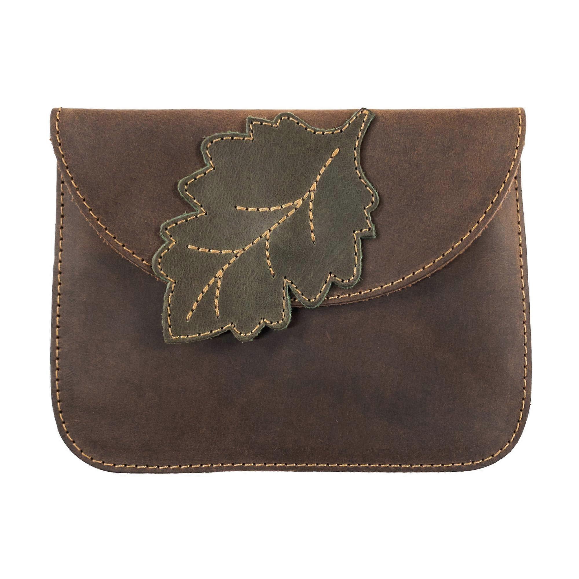 Leather Leaves Card Wallet Pouch - Soft Coin & Cash Organizer, Cable Holder & Accessories Case, Handmade, 101-Year Warranty - Bourbon Brown