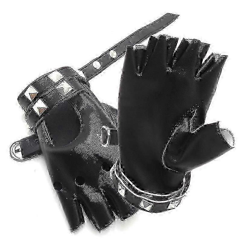 Leather Punk Gloves Fingerless Gloves For Women Driving Cycling Sports