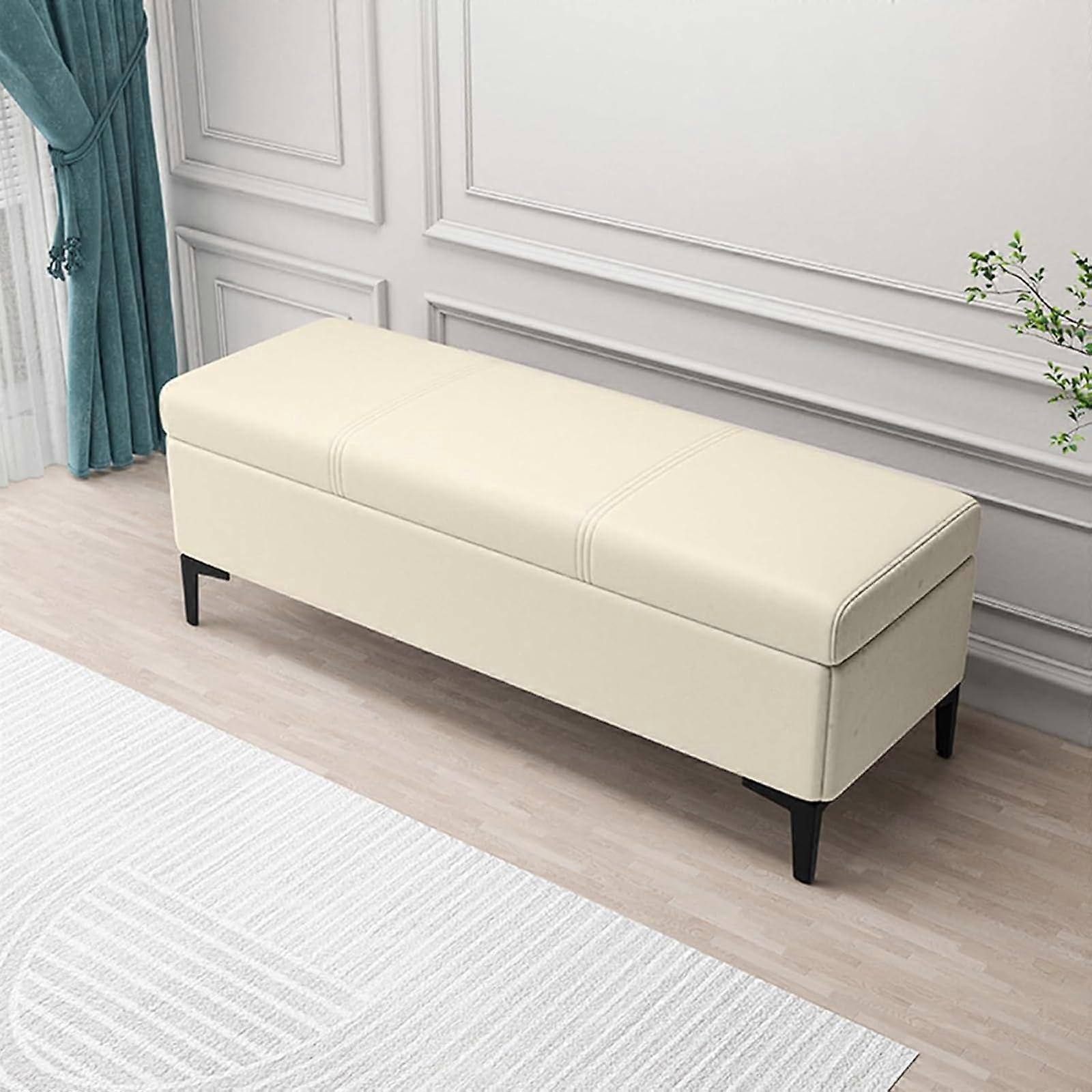 Leather Storage Bench with Metal Legs, Upholstered Ottoman for Bedroom or Entryway, Cream 39.3'