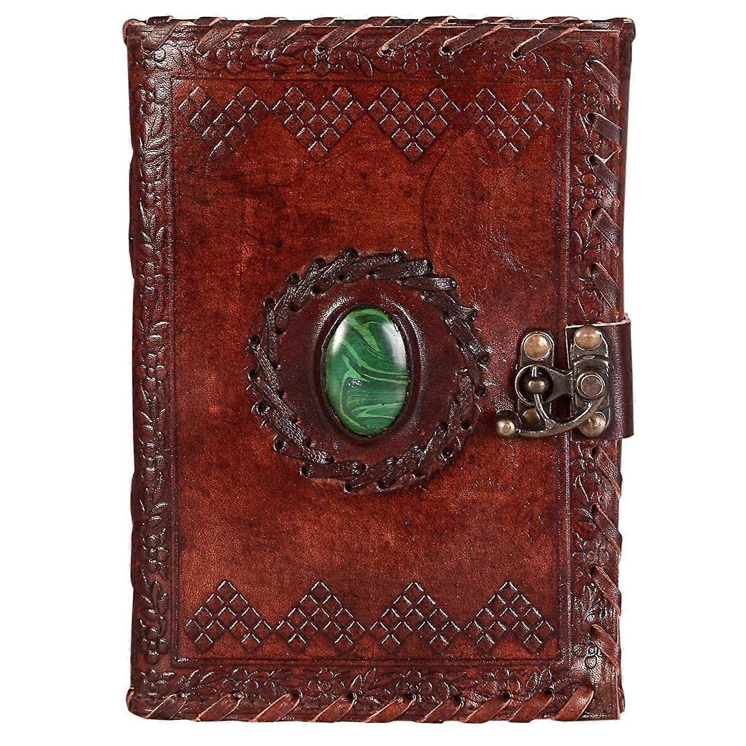 Leather Diary with Antique Green Stone Handmade Leather Bound Diary for Men and Women Unlined 5×7 inches Size 200 Pages