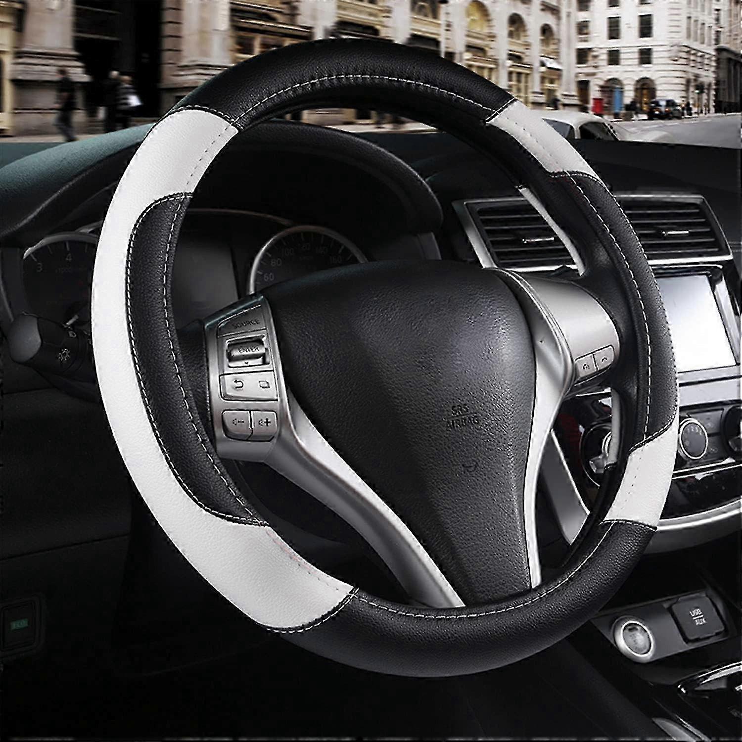 Leather Car Steering Wheel Cover, Non-Slip Car Wheel Cover Protector Breathable Microfiber Leather U