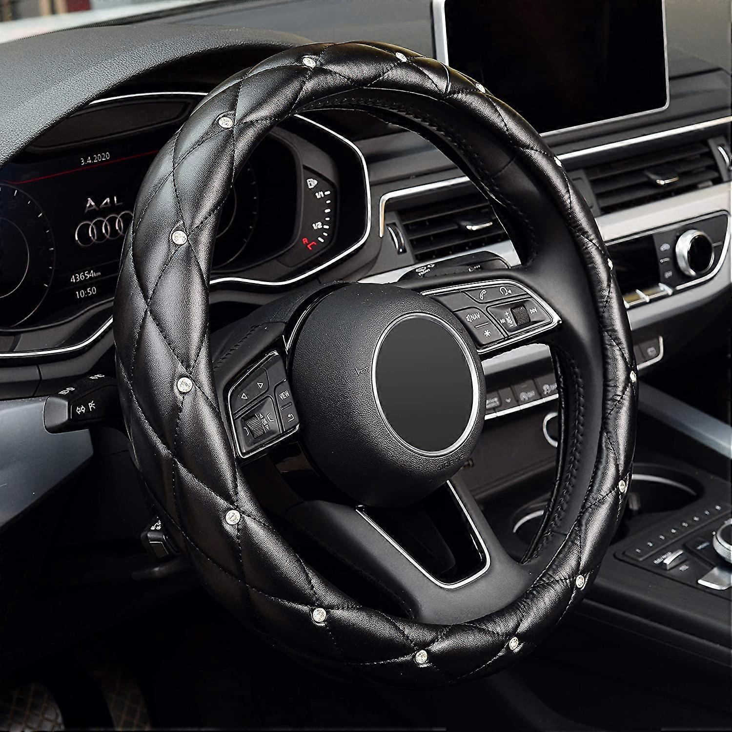 Diamond Leather Steering Wheel Cover with Bling Crystal Rhinestones
