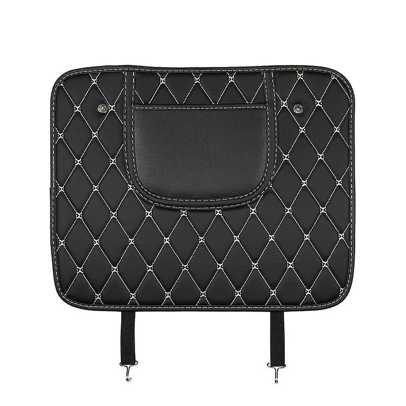 Leather Seat Back Protector Cover Anti Kick Mat With Phone Storage Pocket Car Accessory1pcs-black