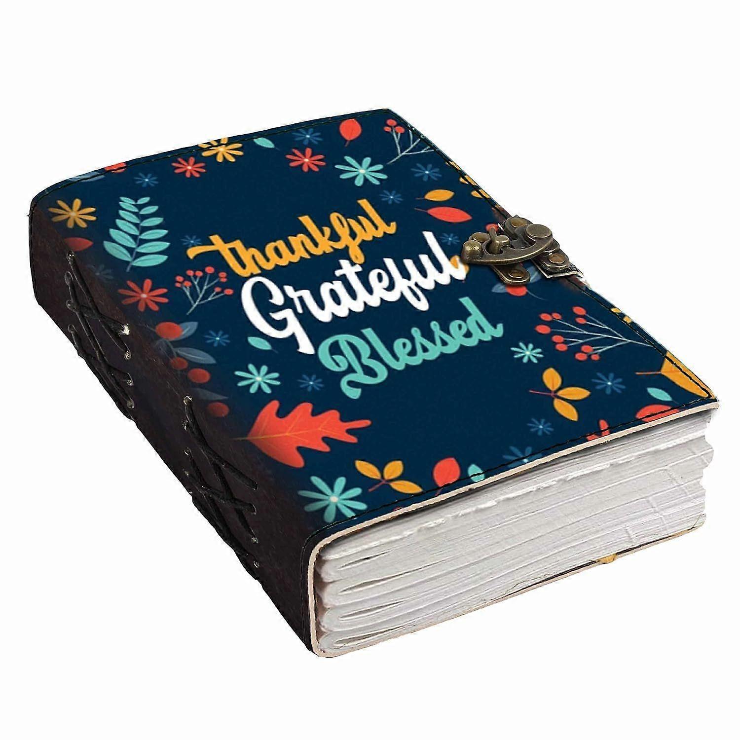 Leather Thankful Greatful Blessed Printed Blank Pages Journal Diary for Personal & Office Use Planner Blank Diary - 7 x 5 Inch