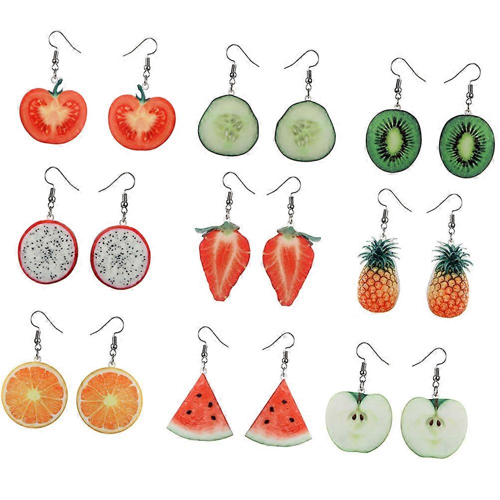 Creative Fruit Themed Jewelry Dangle Acrylic Fashion Design Ear Decorations 9Pairs