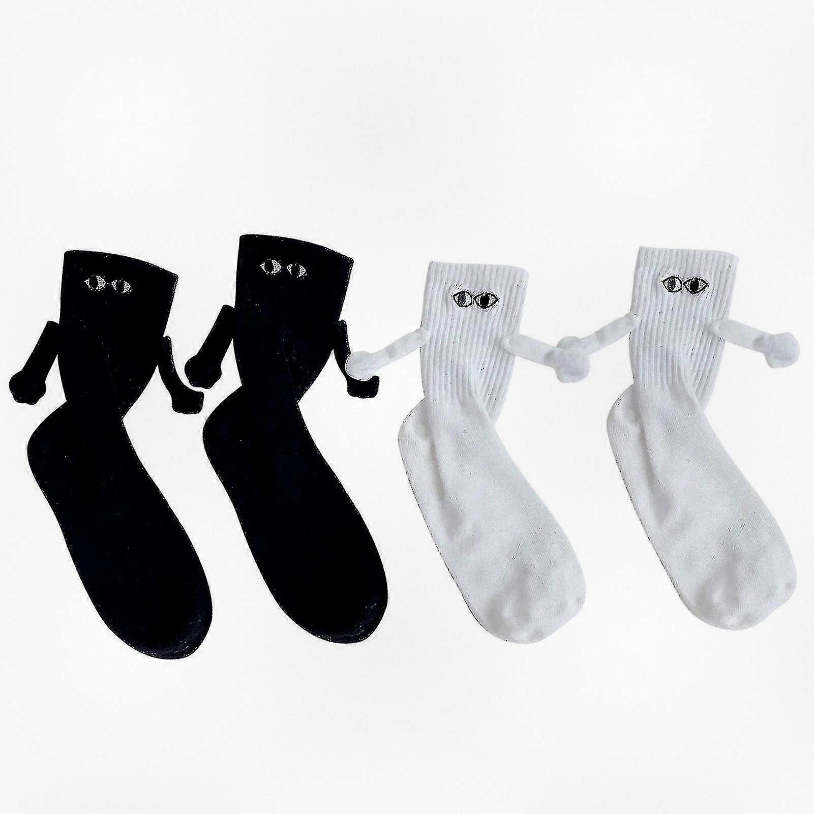 Creative Magnetic Couple Socks with Fun Black White Cartoon Eyes for Men and Women - Fashionable Novelty Gift Idea