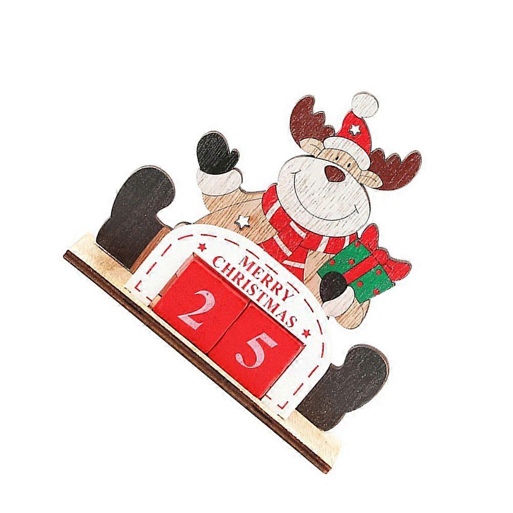 Creative Adorable Elk Design Calendar Christmas Wooden Calendar Decor Desktop Reusable Perpetual DIY Calendar Block Photography Props Ornament
