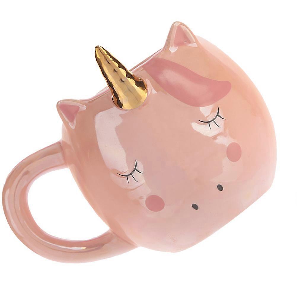 Creative Ceramic Tea Cup Cartoon Unicorn Adorable Container Daily Use present Pink Round 1Pack
