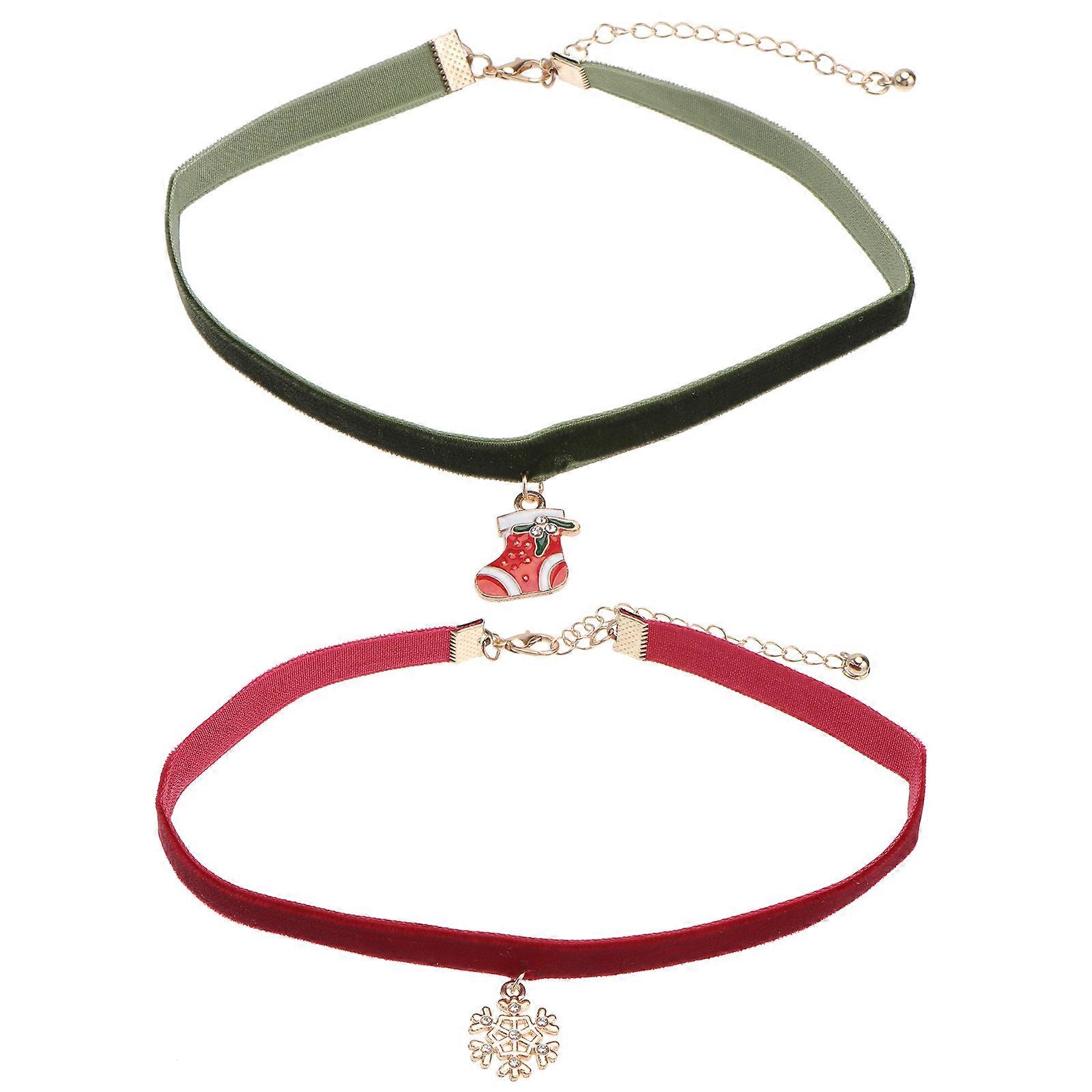 Creative Necklace Christmas Gift Xmas Style Red Alloy Pendant Necklace For Women Lovers Daily Use 2Pcs