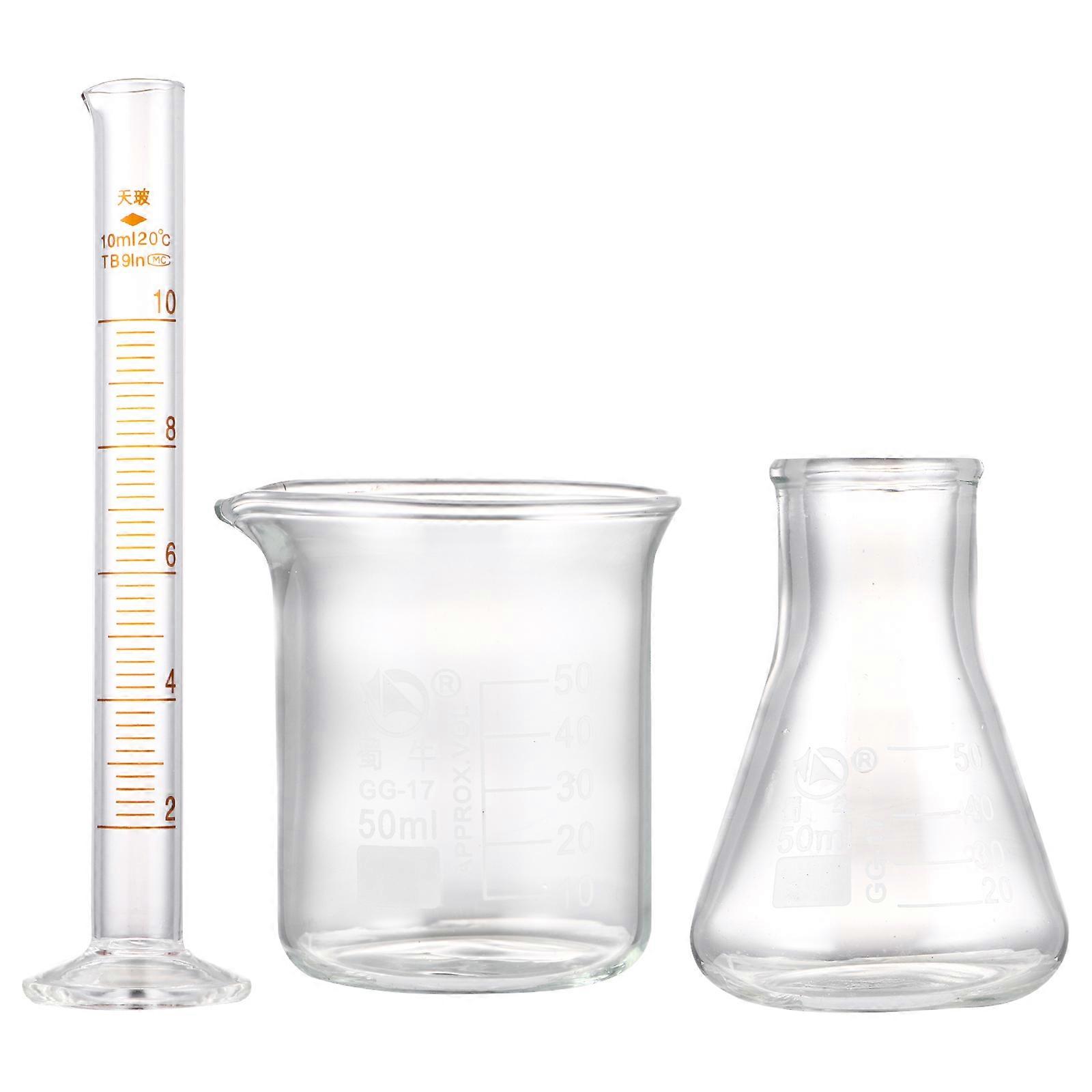 Glass Graduated Cylinder Set 3Pcs Scientific Laboratory Tool Measuring Liquid Assorted Measuring