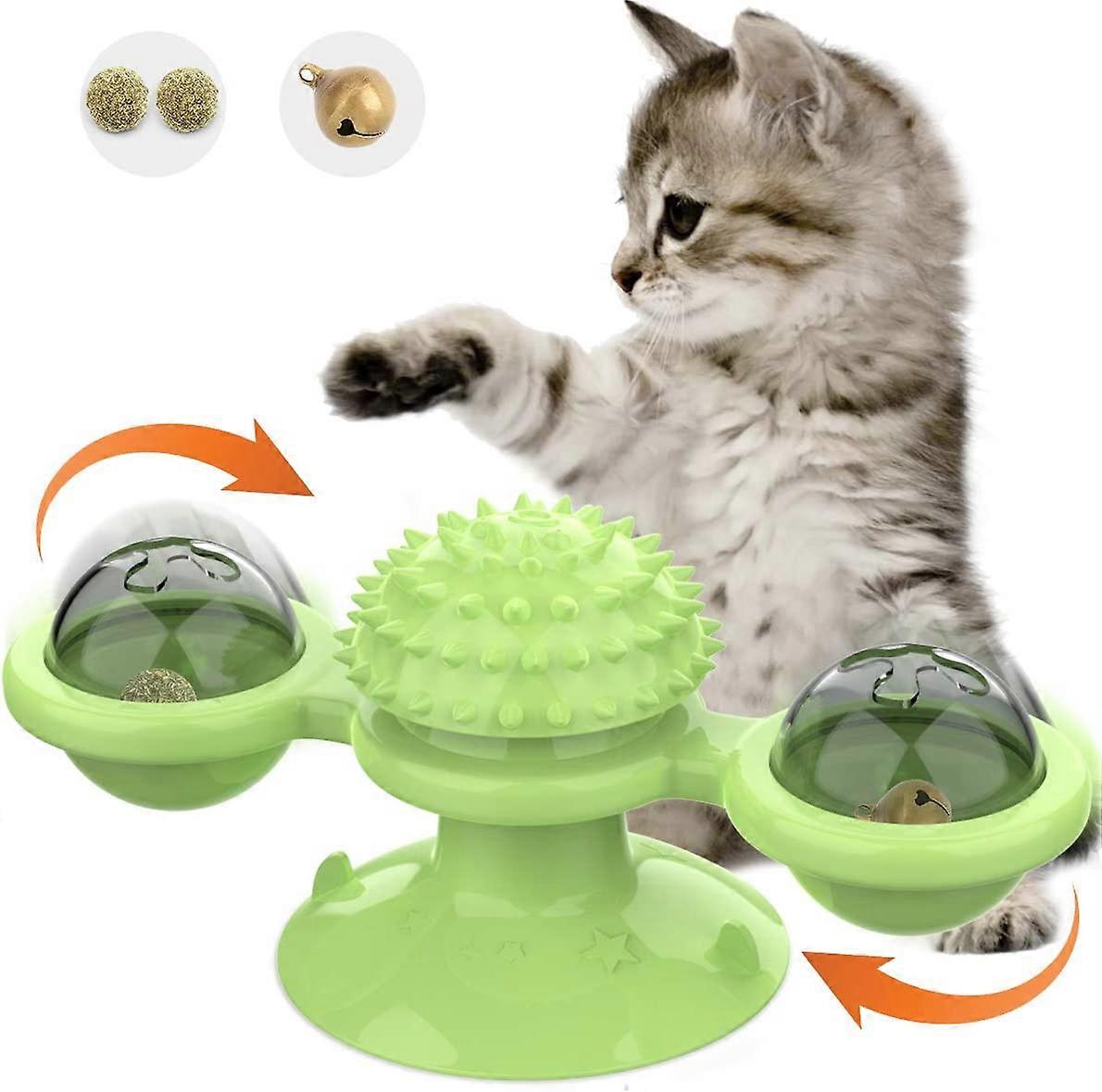 Interactive Cat Toy, Rotating Windmill Cat Toy, Chewing Toy Record Player Hairbrush Pet Toys Cat Catnip - Green