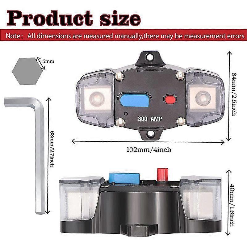 12-48V DC 300 Amp Circuit Breaker with Manual Reset, 0-8 Gauge Trolling Car Stereo Audio Inline Fuse