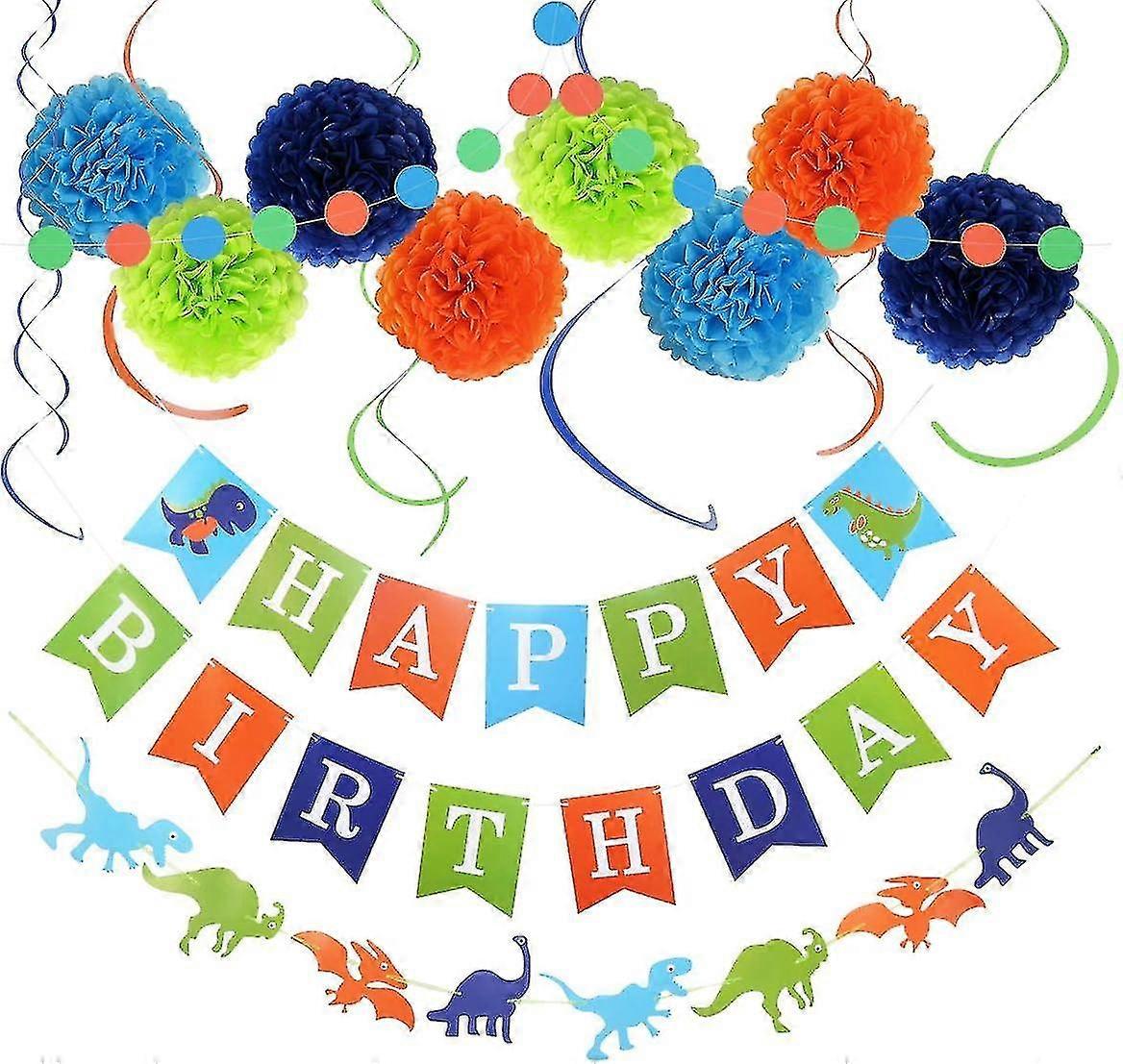 Birthday Decorations, Dinosaur Happy Birthday Decorations For Women, Happy Birthday Banners, Hanging Swirls, Paper Garland And Flowers For Kids Dini P