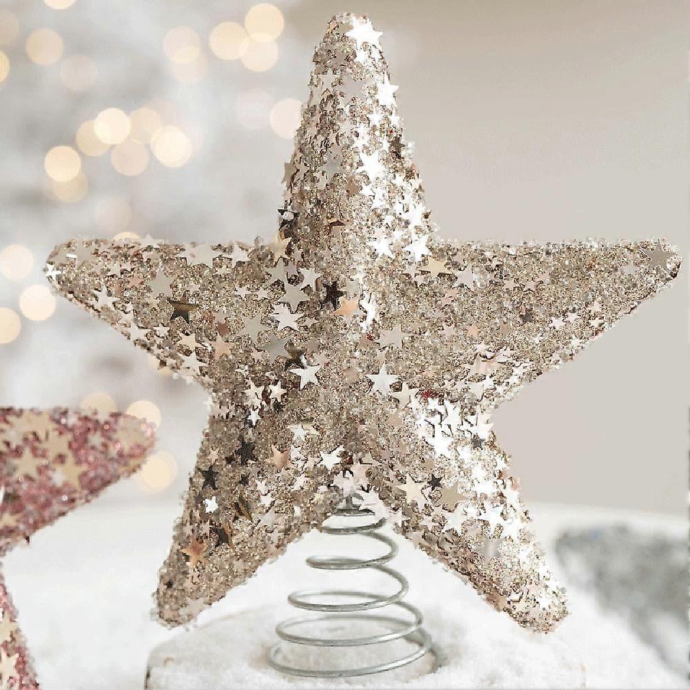 Christmas Tree Decorations Xmas Tree Star Glitter Tree Topper Various Colours, Champagne