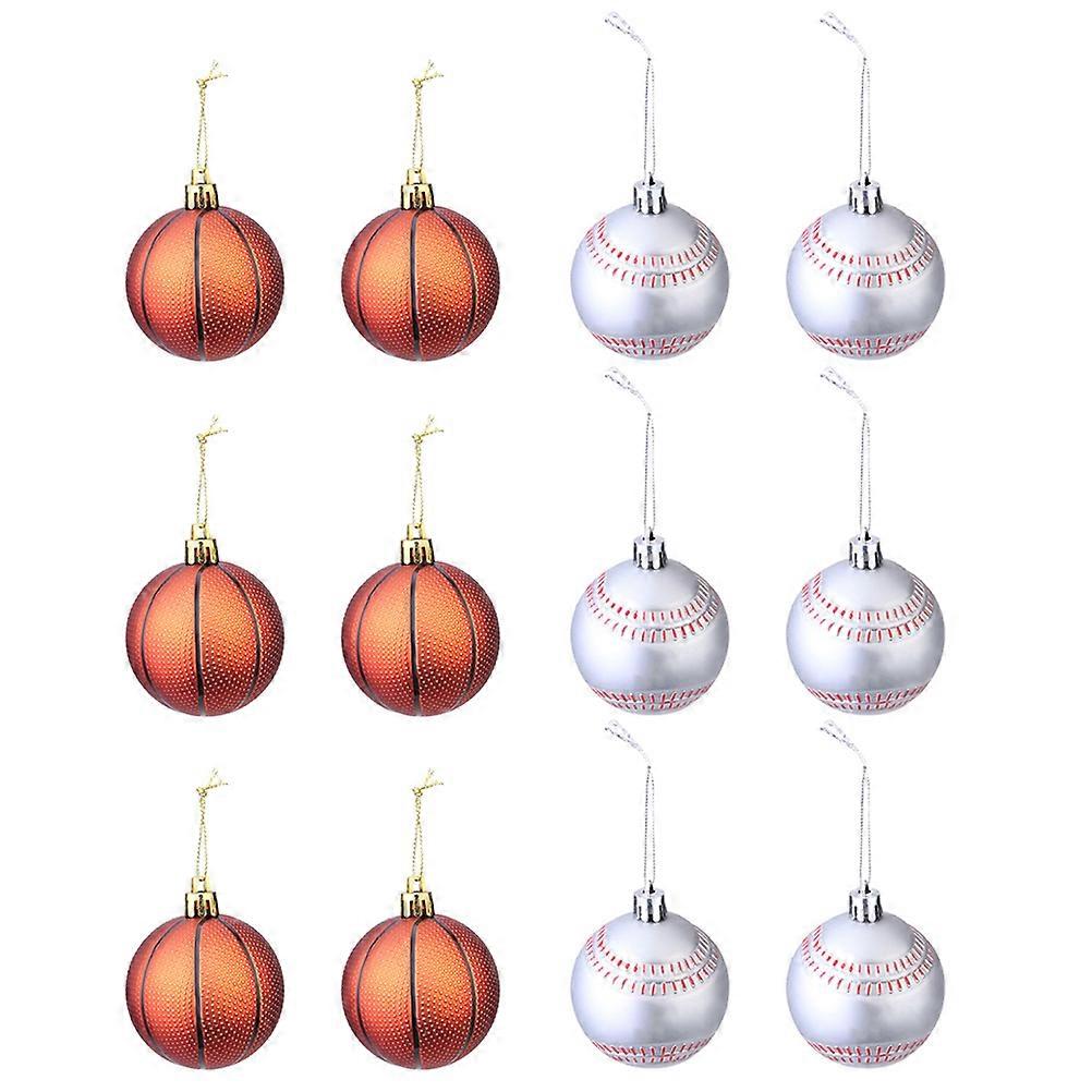 These are 6pcs basketball shaped and 6pcs baseball shaped Christmas hanging Pendants, which are well made of material, environmental protection and , healthy and safe. You can it on Christmas tree, wall or window, etc. for decoration. It can be used for various art pieces and activities during the party to keep the kids interactive and entertained. Features -Color:Assorted Color -Material: Plastic -Size: 6x6x6cm/2.36x2.36x2.36in - Bringing sporting elements and joyful atmosphere to your party. - Suitable for many holidays, Christmas Day, New Years Day, etc. - Made of premium plastic material, for lasting use. - A present for your friend and family. - Can be widely used at stores, offices, hotels and restaurant, bars, etc, perfect decor for Christmas, party. Package list: 12 x hanging pendants