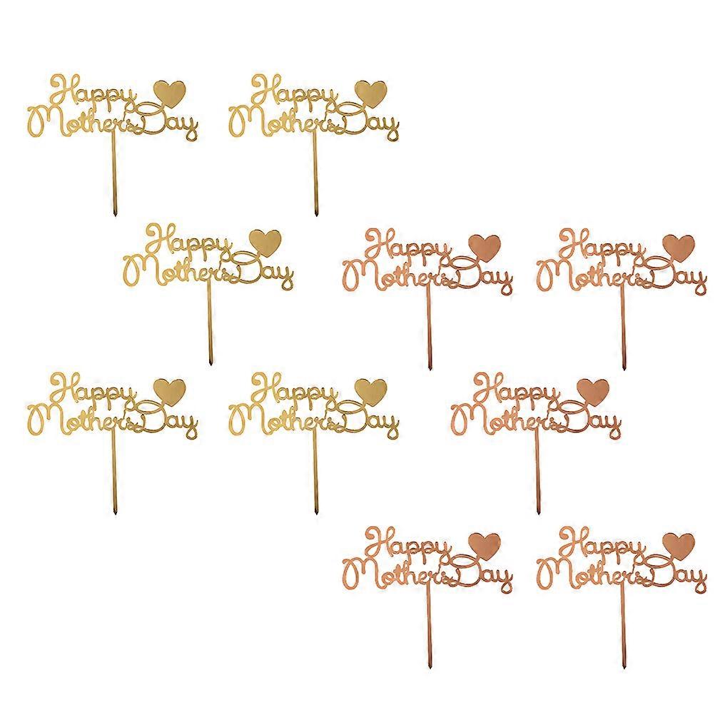 Happy Mother's Day words printed designed, funny and glamorous, make your cake a perfect display. These cake pick toppers are a great decoration which can decorate your cake, pie, fruit plate, which will help you create a prettier cake scenic and bring your mom big surprise. Features - Color: Golden, Rose Gold. - Material: Acrylic. - Size: About 13.50X12.00X0.10cm/5.31X4.72X0.04in. - Not easy to deform, lightweight and portable, the color will not fade easily. - It will be lovable ornaments for cupcake, cake, dessert, fruit pie, cookie and so on. - Thankful words design, adding brilliance and fun to your food, also add your appetite to enjoy it. - Suitable for mothers day, can add some lively and pleasant atmosphere to the parties. - It will make the cake look tastier, can also be a distinctive photo prop to take more wonderful photos. Package list: 10 x cupcake toppers