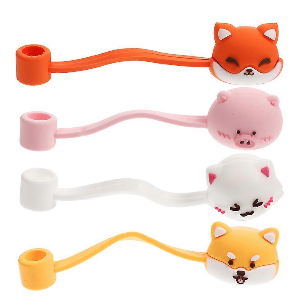 Decorative Drinking Straw Plugs Featuring Cartoon Animal Shapes For Baby Showers Graduation Parties 8 Pcs