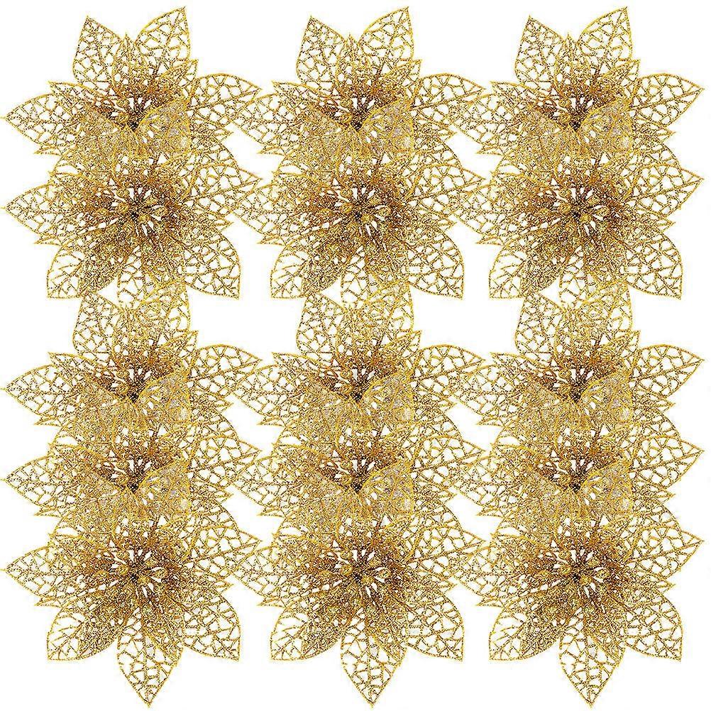 Decorative Fake Flower Artificial Christmas Flowers Golden 15x15cm Decoration 30Set