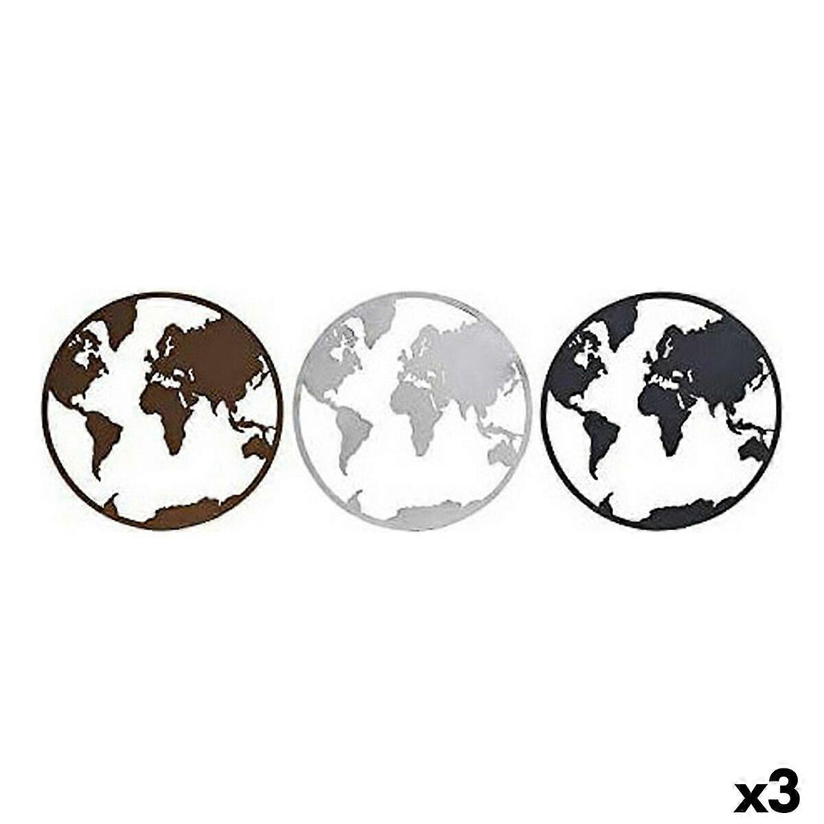 Deko-Figur DKD Home Decor Weltkarte Schwarz Kupfer Weiß 40 x 1 x 40 cm (3 Stücke)