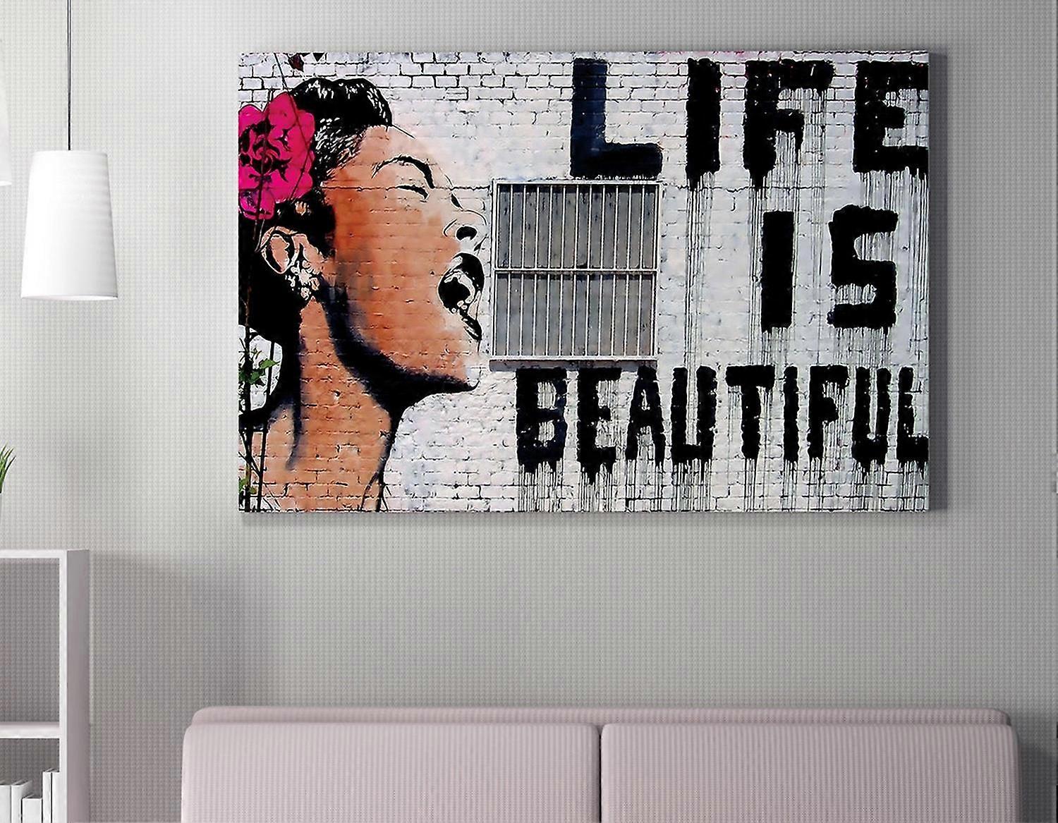 Missa inte möjligheten att äga ett konstverk som överskrider tiden och talar till djupet av den mänskliga upplevelsen. Lägg till den här dekorativa inramade canvasmålningen till din samling och låt Banksys geni förvandla ditt utrymme till en fängslande fristad av inspiration och skönhet.