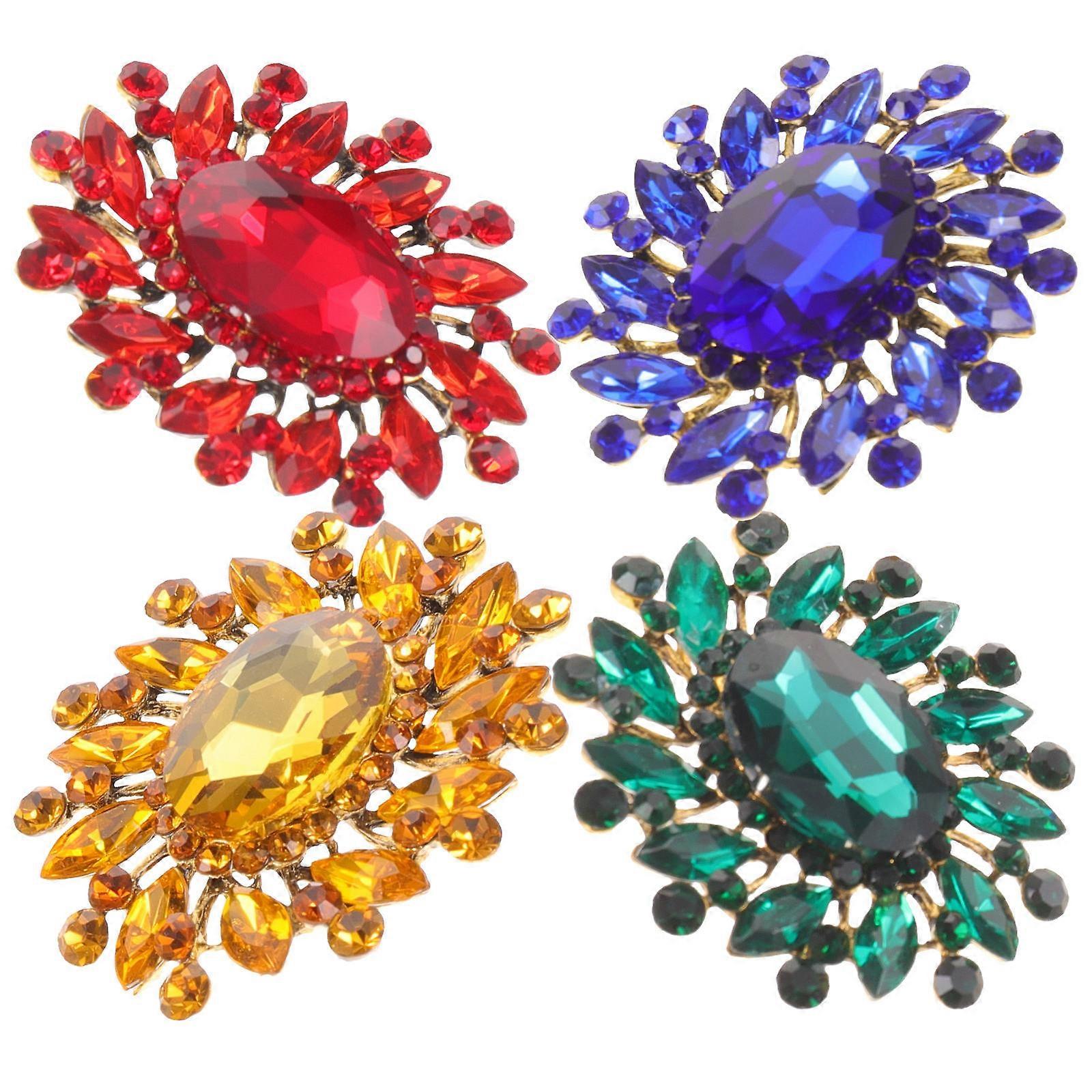 Decorative Brooches Women Vintage Style Round Shape Green For Wedding Party 4Pcs